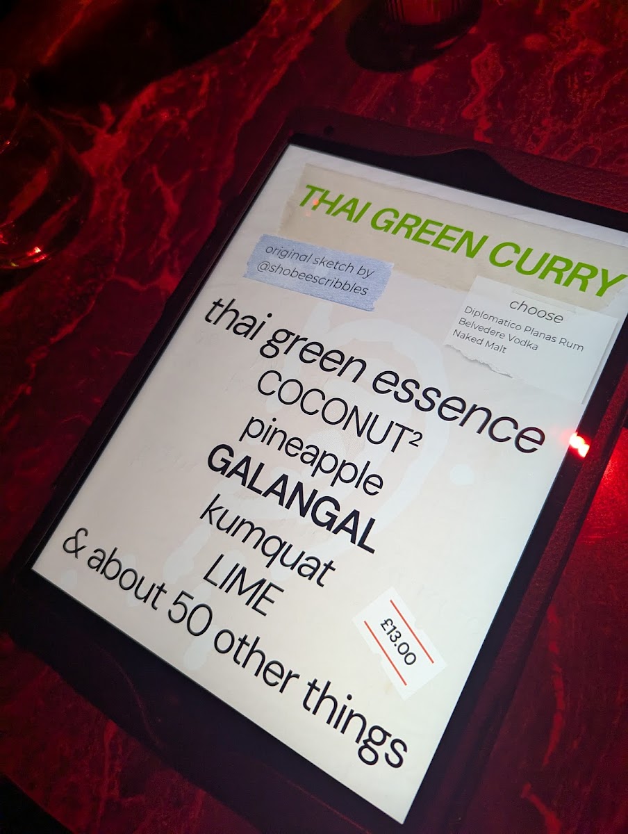 The menu dazzles with a range of innovative cocktails, such as the famed Thai green curry cocktail, which delightfully balances flavors while highlighting the quality of spirits used. The unique ordering system, featuring tablets, adds a modern twist to the experience, allowing patrons to explore a thoughtfully curated selection.